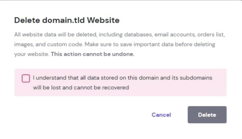 - It may take 10–15 minutes for a website to be completely deleted — give it some time and reload the page to ensure it’s removed.
