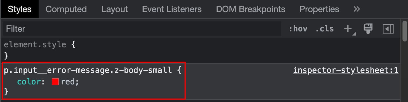 <style>.p.input__error-message.z-body-small {color: red !important;} </style>