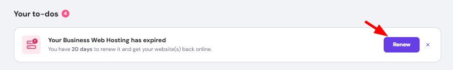 1. On the Home page of hPanel, click Renew next to the expired hosting plan.