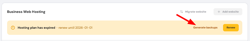 Besides reactivating your plan, you may also have the option to download the most recent backup of your hosting plan. All website files are included in a single archive, and each database is available as a separate download.