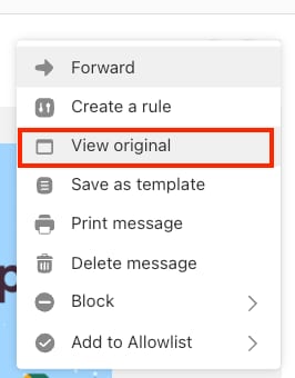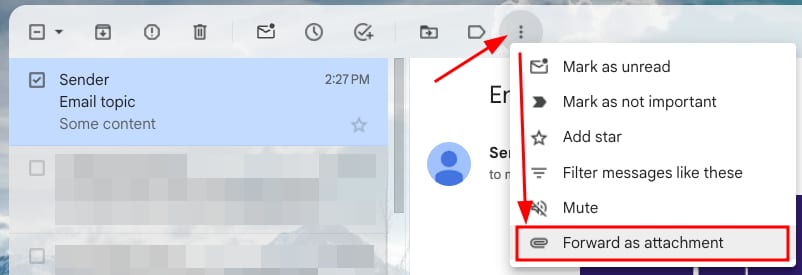 In the first step, you need to forward the phishing email(s) you received to specific addresses. If your email service doesn’t have a “Forward as attachment” button, you’ll need to download an .EML file instead and send it as an attachment.
