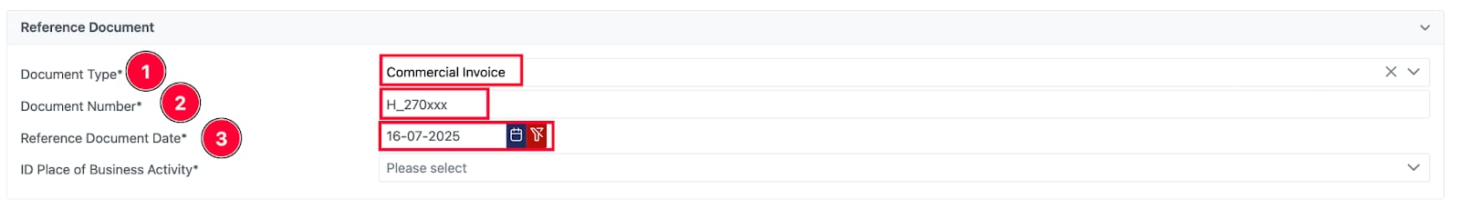 Reference Document Date (Tanggal Dokumen) fill with date issued on invoice (16-07-2025)