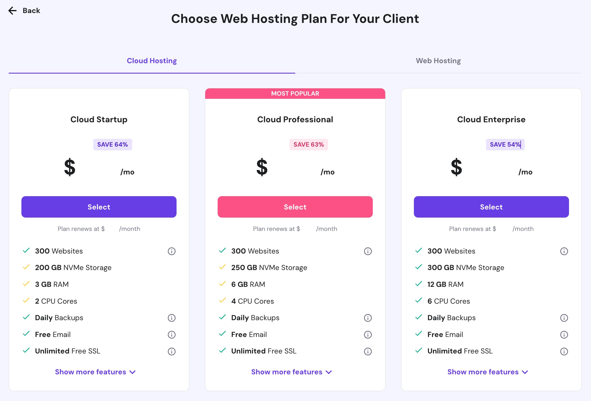 At Hostinger, you can effortlessly add and manage clients, all within our hPanel’s user-friendly interface. In addition to adding new clients, you can pre-select a hosting plan for them to make their onboarding journey more efficient and time saving.