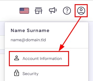 Within your Hostinger account, click on Account in the top right and select Account Information:
