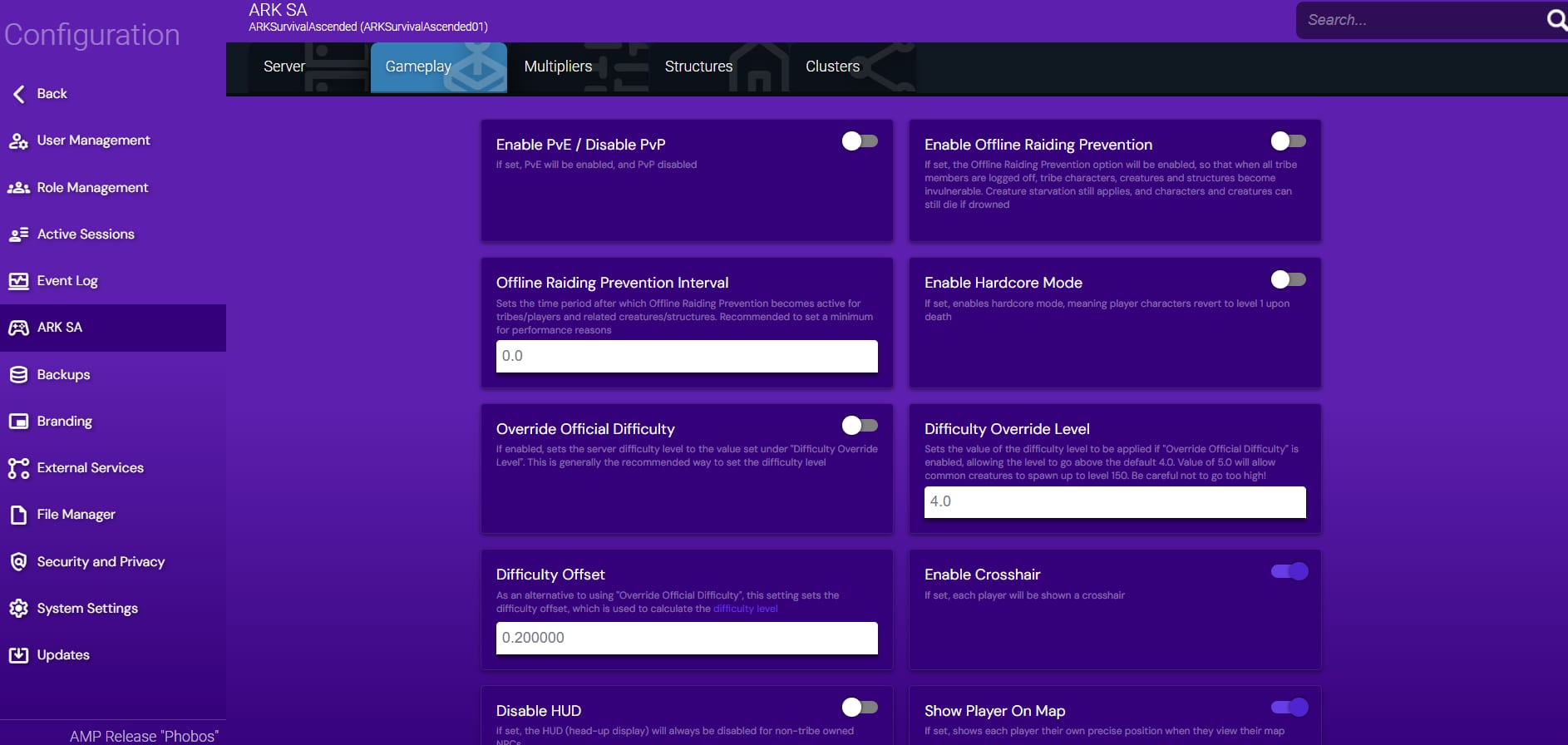 Game Panel allows you to modify ARK: Survival Ascended settings to make your gaming experience unique easily. To do so, double-click on the instance and head down to the Configuration page.