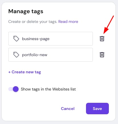 Custom tags is a feature available on web and cloud hosting plans at Hostinger, designed to help you organize and streamline your websites more effectively. You can create personalized tags and assign them to your websites, making it easier to categorize, search, and filter your websites, be it by content type, such as blogs, news, e-commerce, etc., or any other way you according to your needs.