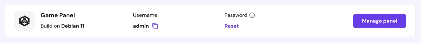 First, make sure that you have a game panel installed. Once the game panel is set up, navigate to the hPanel overview page. On this page, locate and press the “Manage Panel” button to access the control panel for your server.