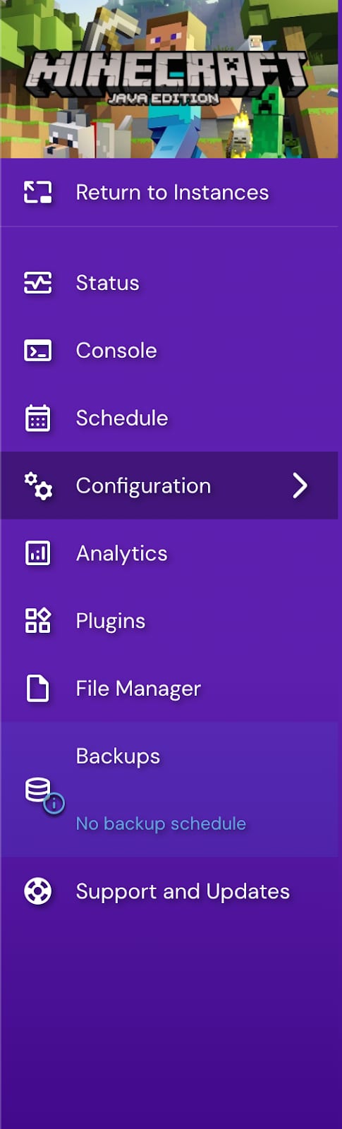 Return to your Minecraft server instance in the game panel and in the server management options, choose “File Manager” to access the server’s files.