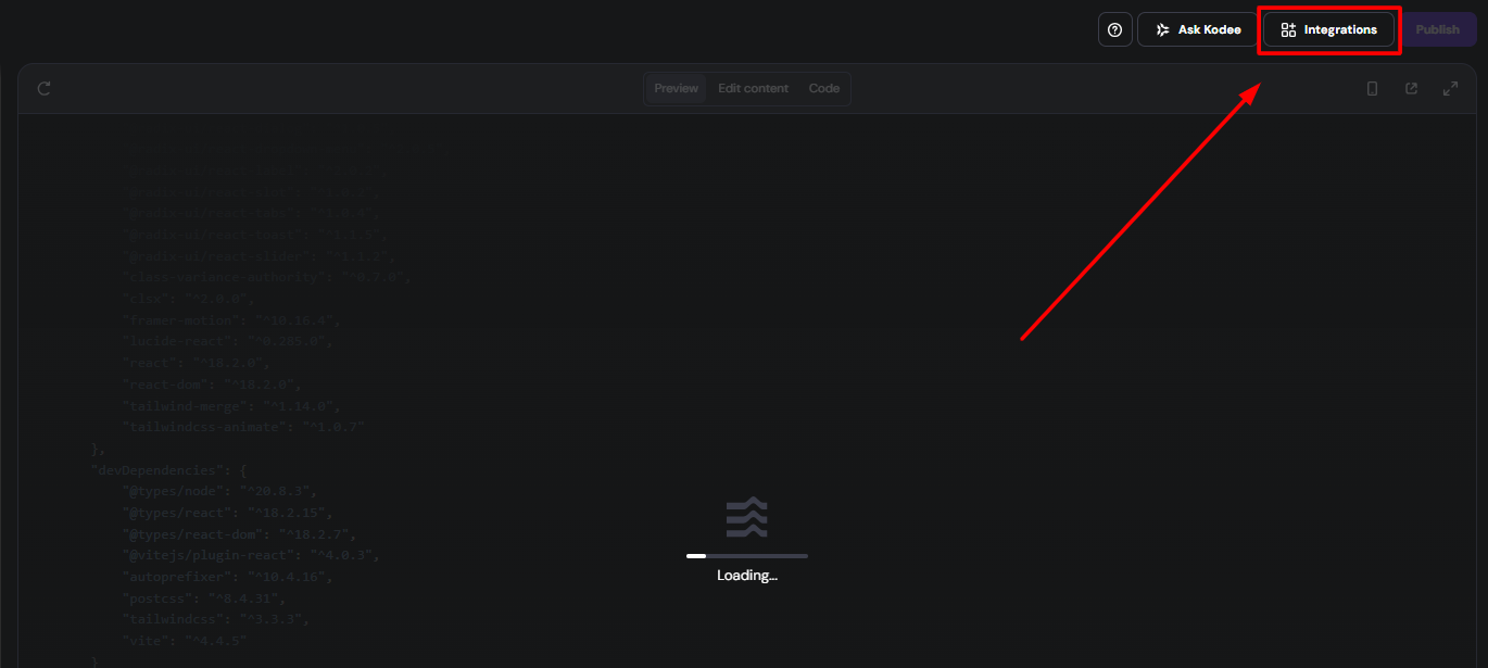 To find it within your Horizons project, you would first need to click on Integrations, in the top left corner of your tool: