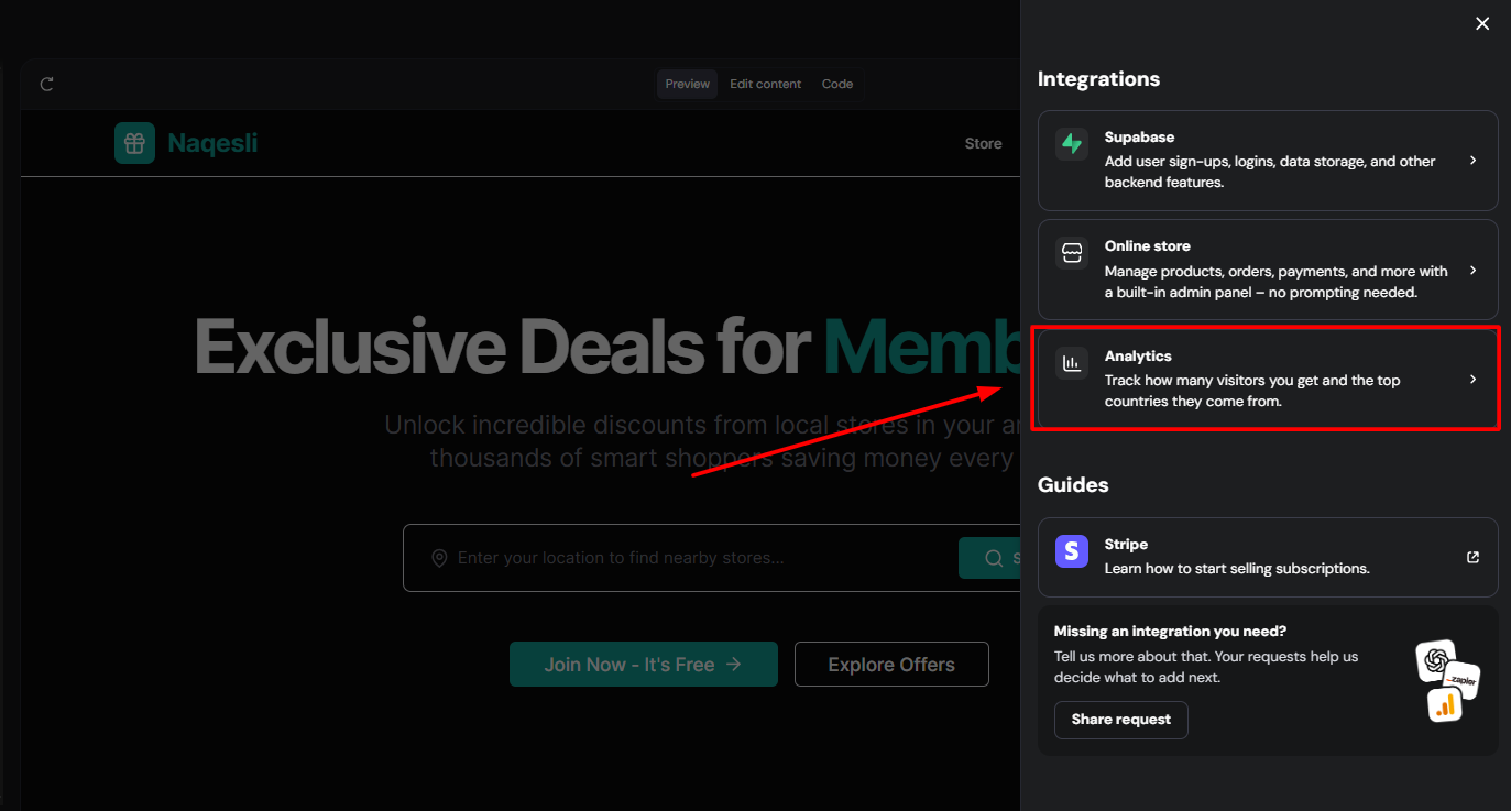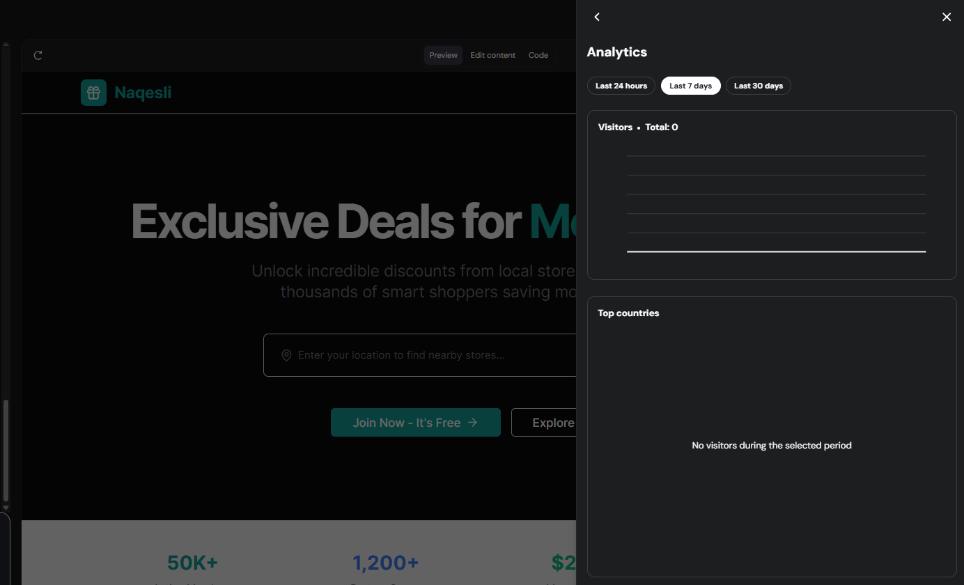 If you use Hostinger Horizons, you can get detailed insights into who visits your website with the help of our built-in analytics tool. Analyze your website traffic and tailor your content more effectively to suit your audience!
