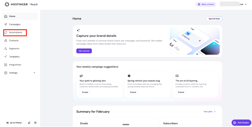 - Go to your Hostinger Reach dashboard