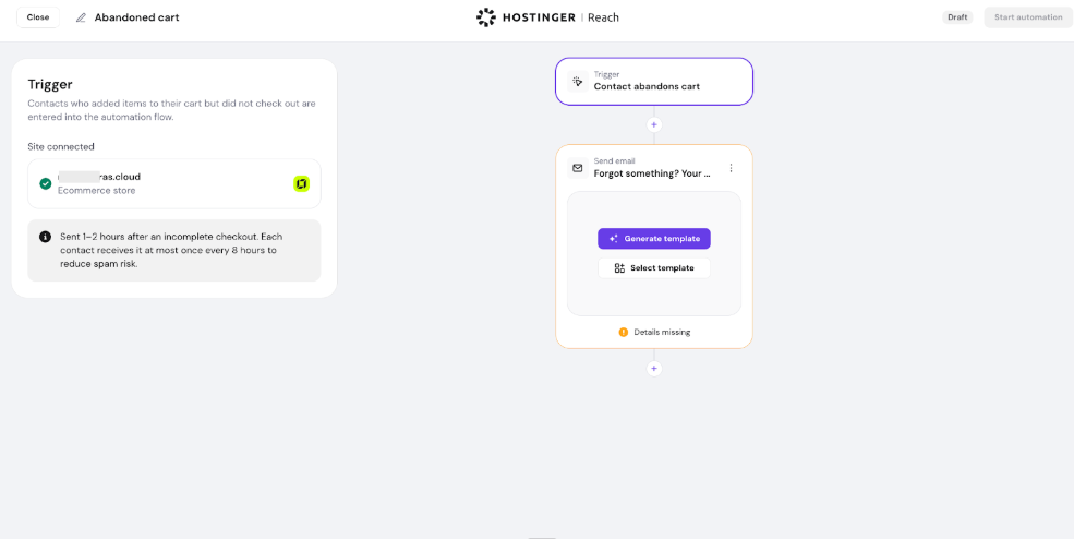 With Hostinger Reach and Hostinger Website Builder working together, recovering abandoned carts becomes a fully automated process — helping you increase sales with minimal effort.