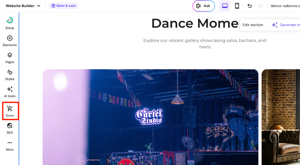 - Open your Website Builder editor
