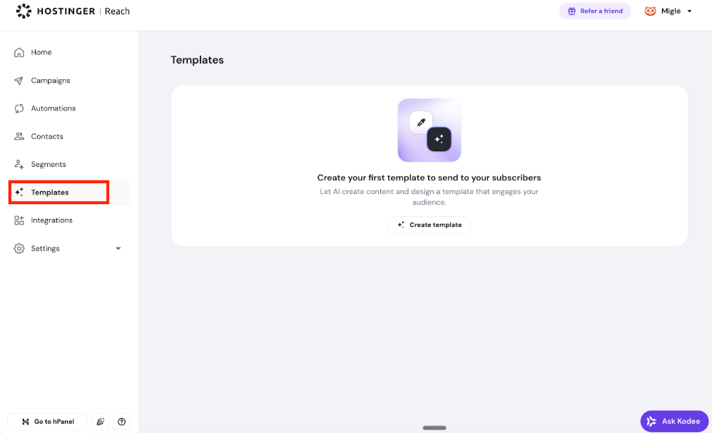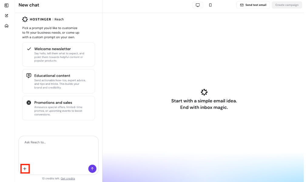 When creating email templates with AI in Hostinger Reach, you can now upload an image as a design reference. This helps the AI generate a template that matches a specific layout, style, or visual direction.