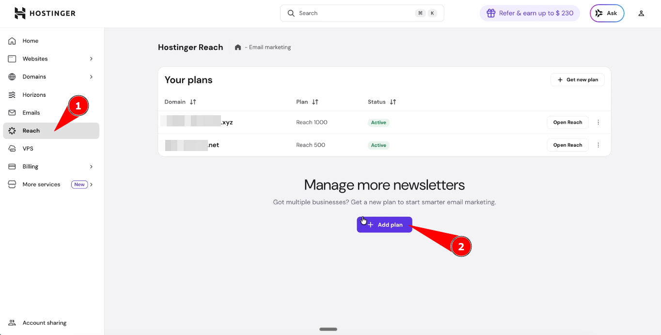 - Go to hPanel → Reach.