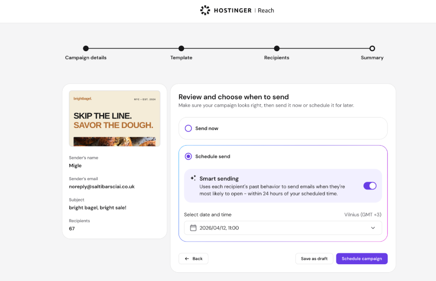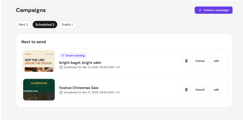 Smart Sending takes the guesswork out of email timing. Instead of choosing one send time for everyone, it automatically delivers your campaign when each recipient is most likely to engage—helping you get better results with less effort.