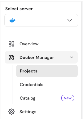 - In the left sidebar, click on Docker Manager and select the Projects sub-menu.