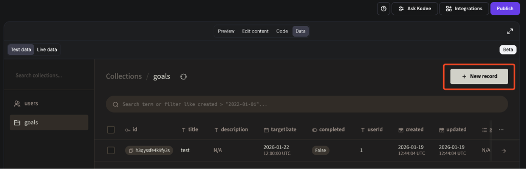 Hostinger Horizons projects now come with built-in data management — allowing you to view, edit, and create the data your application relies on, such as form submissions, blog posts, or user accounts.