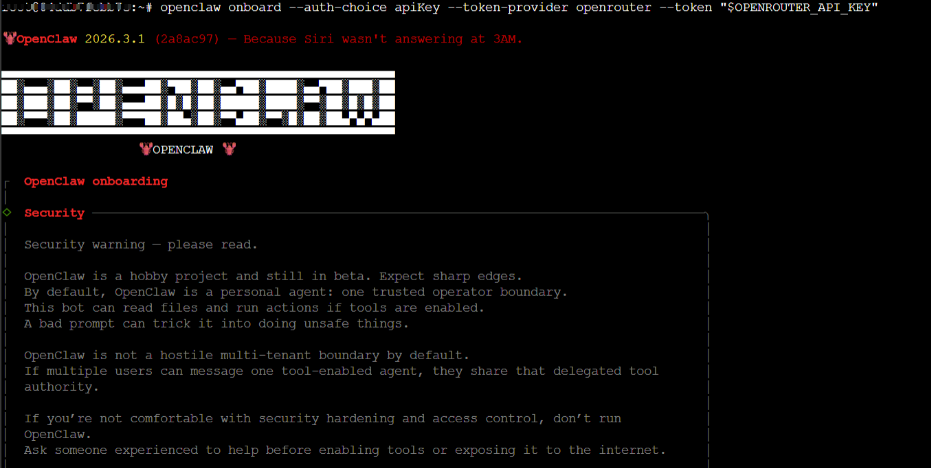 openclaw onboard --auth-choice apiKey --token-provider openrouter --token "$OPENROUTER_API_KEY"Replace $OPENROUTER_API_KEY with your actual OpenRouter API key.