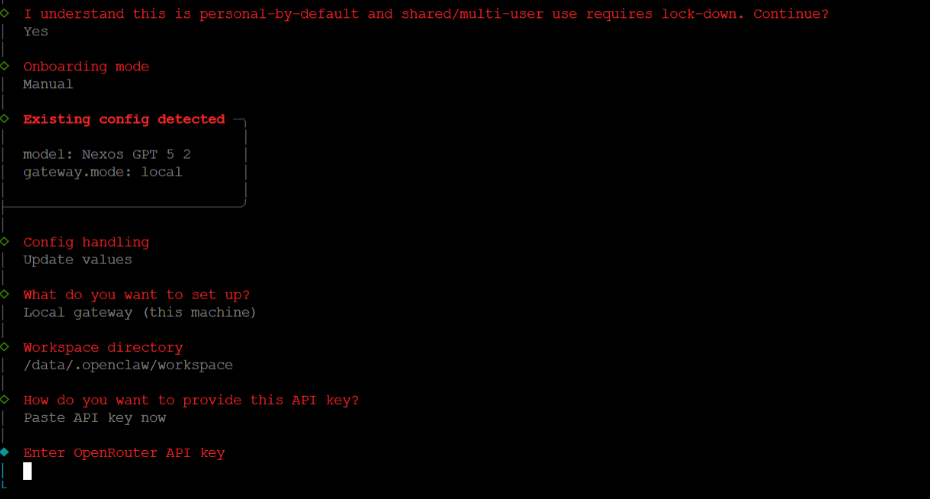 docker exec -it openclaw-XXXX-openclaw-1 bashStep 3 – Run the onboard command