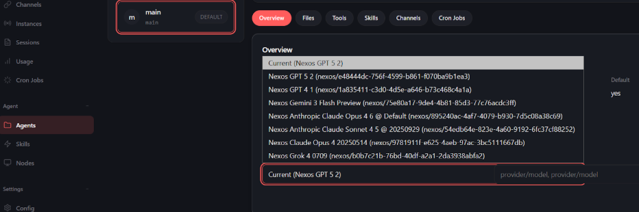 docker restart openclaw-XXXX-openclaw-1Step 5 – Select the model in OpenClaw