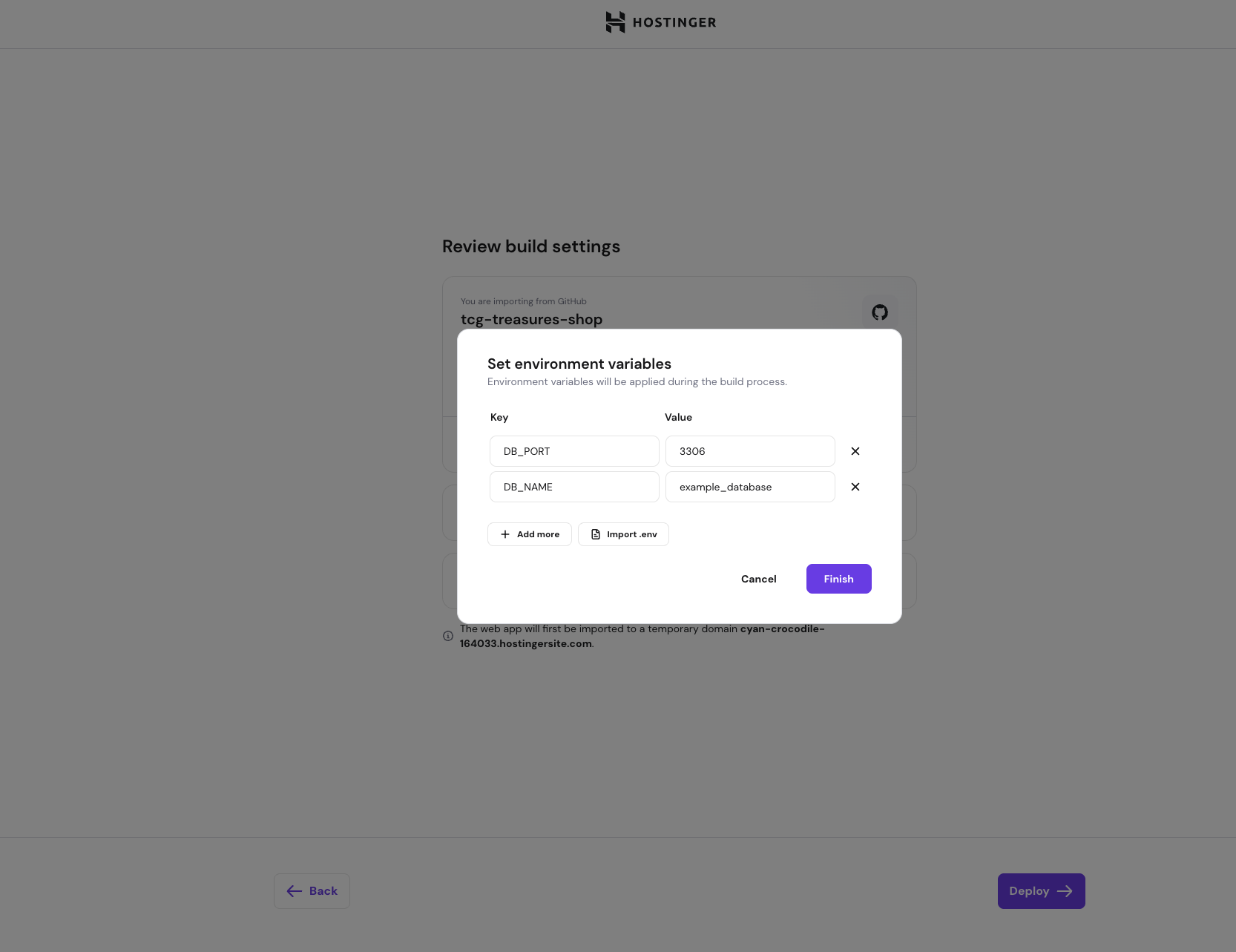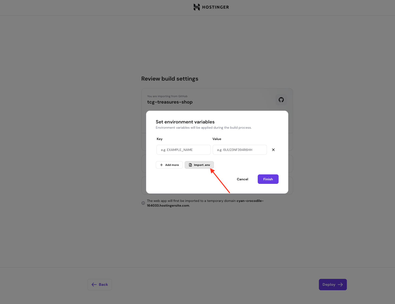 When deploying a Node.js application on Hostinger, you can configure environment variables as part of the deployment process. Environment variables are commonly used to store sensitive data and configuration values such as database credentials, API keys, and application settings.