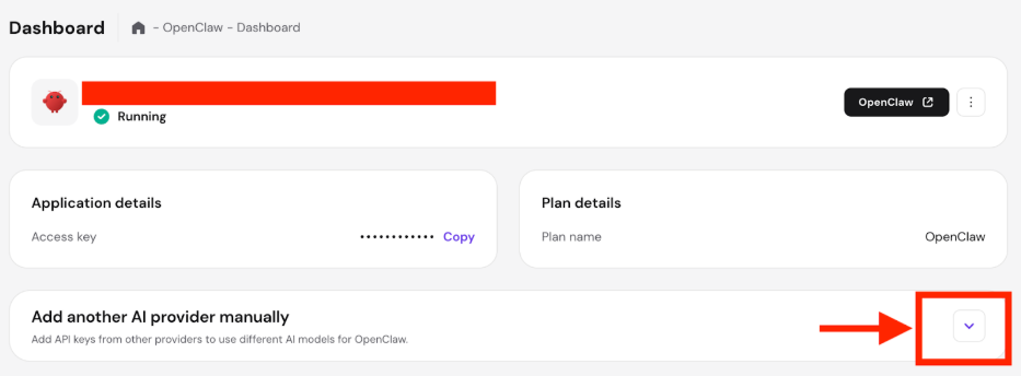 - Locate the section labeled Add another AI provider manually and click the arrow to expand the options.