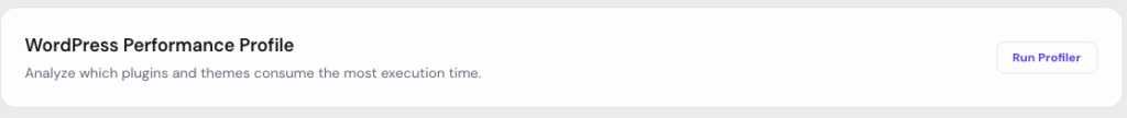 For WordPress websites, you can analyze which plugins and themes are affecting your site’s performance. You can find under the Resource Usage Overview → click Run Profiler