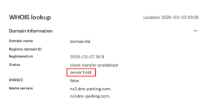 Before taking any action, check your domain’s status to confirm it is on serverHold.