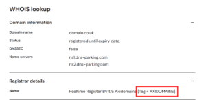 - If the IPS tag shows AXIDOMAINS – You will need to submit the required documents and contact Nominet directly by email to request the suspension to be lifted.