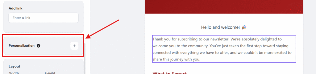 Make your emails stand out with a personal touch! Personalization lets you automatically include each subscriber’s first name, last name, or email address in your messages — helping you build stronger connections and boost engagement effortlessly.
