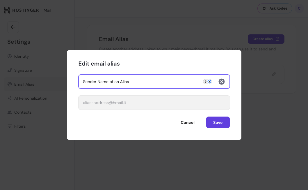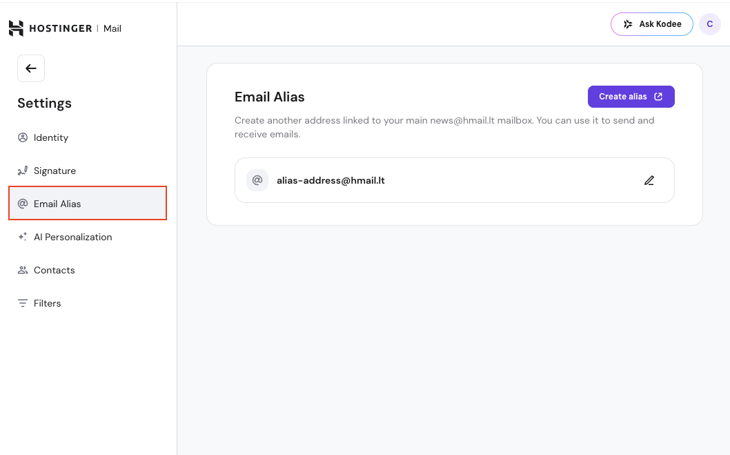 To create, assign, or remove aliases in hPanel, follow this guide: How to Set Up an Email Alias With Hostinger Email