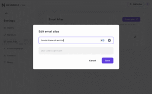 A sender name for an alias is optional. If set, recipients will see it in the From field along with the alias email address.