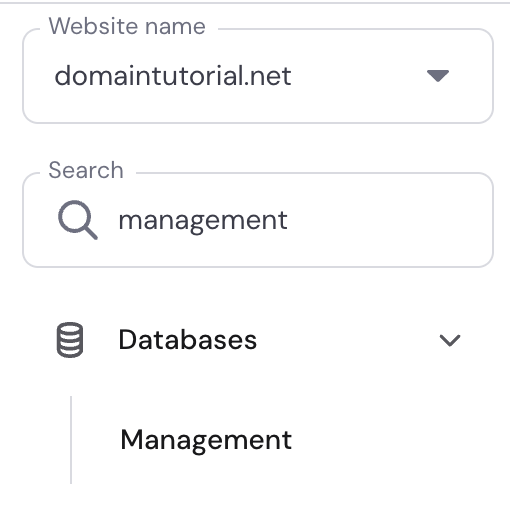 This can be done by accessing Websites → Dashboard, searching for Management under Database on the left sidebar, and clicking on it: