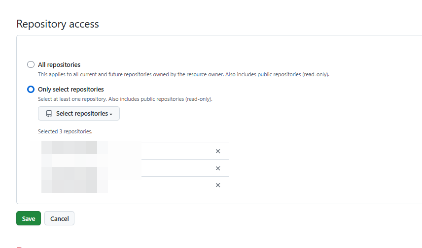 - Select All repositories to grant access to all current and future repositories