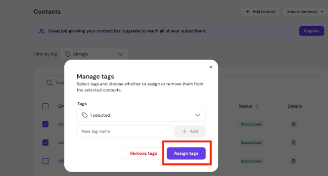 Tags make it easier to organize your audience and ensure that your campaigns reach the right contacts.
