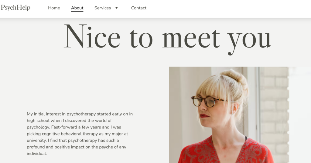 The ample use of whitespace enhances the page’s visual appeal, providing an engaging user experience for her website visitors.