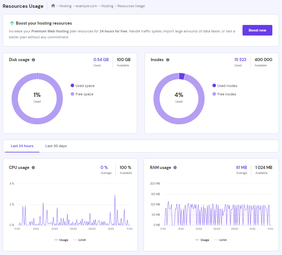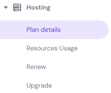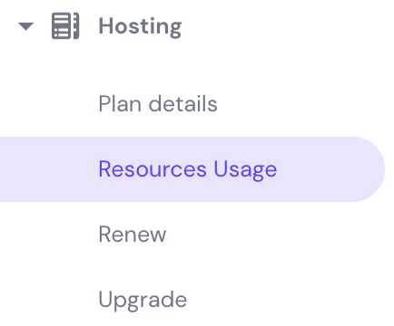 - On the Hosting Account, go to Hosting → Resources Usage.