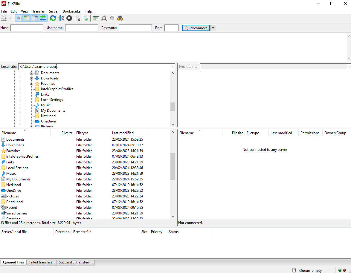 After the installation is complete, open FileZilla and start getting acquainted with its interface, which will prepare you for the initial FTP connection.