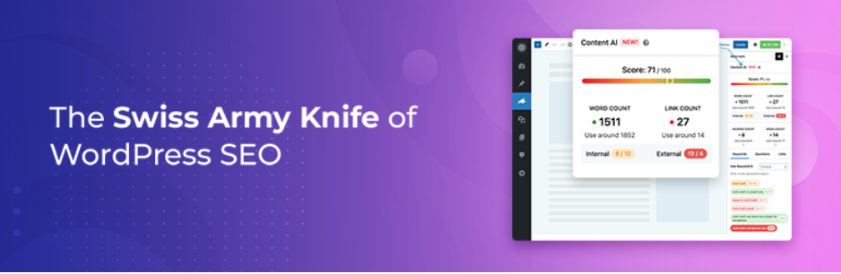 Rank Math is a search engine optimization (SEO) plugin that uses AI to help you identify relevant keywords and optimize your posts. It also gives you an advanced search engine optimization analysis of the entire site, highlighting any problems with the content.