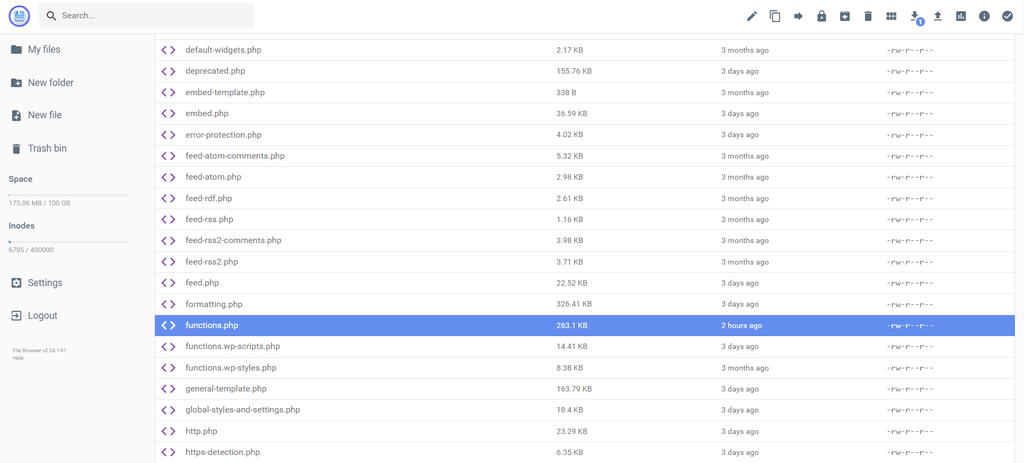 Locate the functions.php file in public_html → wp-includes. Right-click on the file and select Edit, or double-click to modify it.