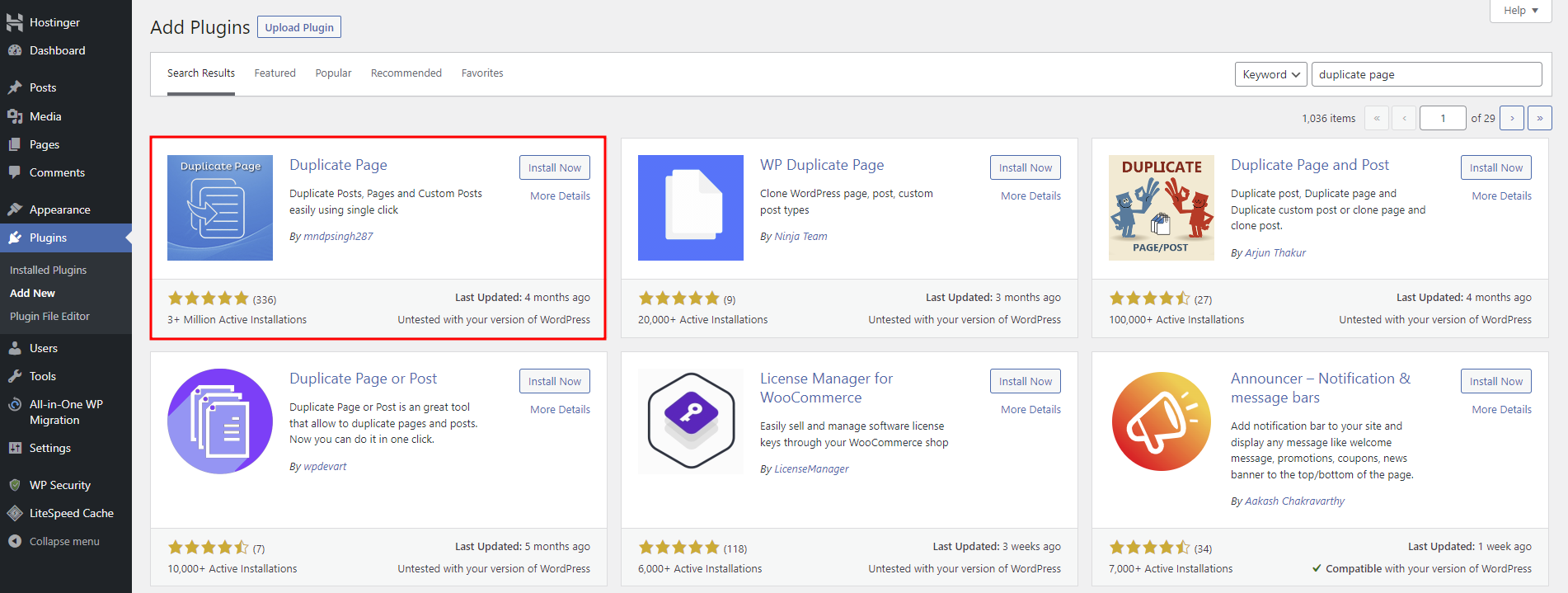 - Install and activate Duplicate Page from the WordPress plugin directory. Other ways to install the plugin include using an FTP client and uploading the plugin files manually through your admin dashboard.