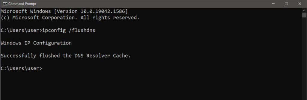 4. Flush the DNS cache via Command Prompt.