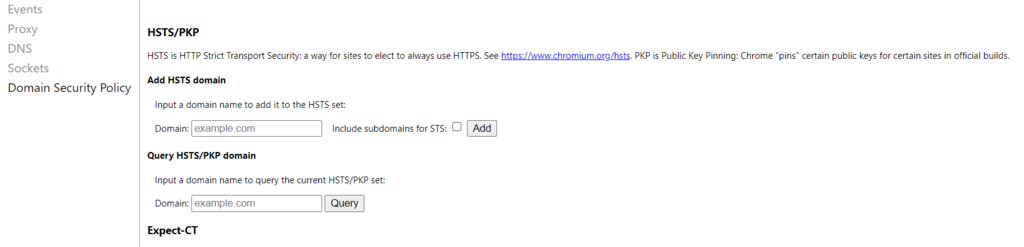 1. Enter chrome://net-internals/#hsts on your browser’s address bar.