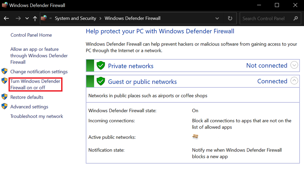 If the option is not clickable, it means the firewall settings are under another security program’s control. If this is the case, you might want to uninstall that app first.