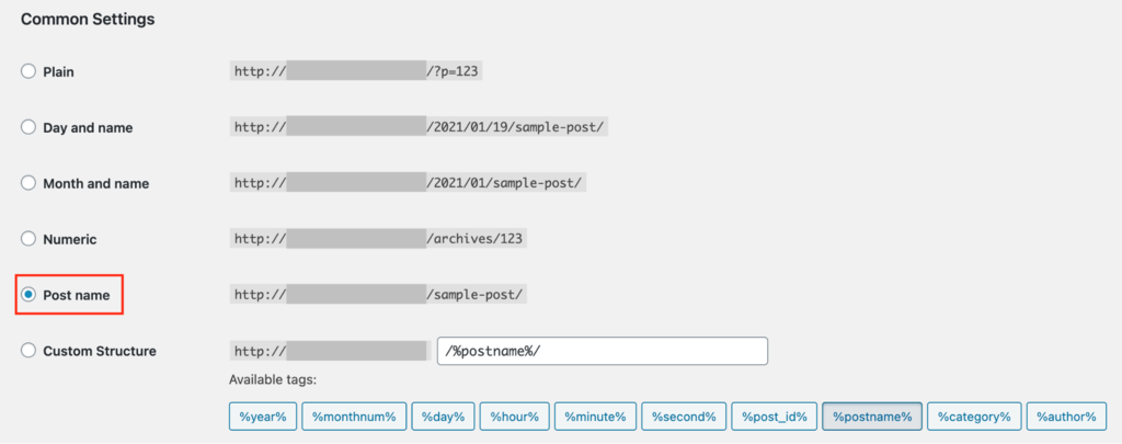 On the Permalinks Settings page, select the Post name option. This will set it as the new default for your website’s URLs.