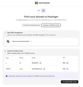 Connect your domain to a website hosted at Hostinger