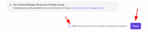 At this stage, you can enable an email notification to receive an alert once your domain starts pointing to Hostinger by marking the checkbox.