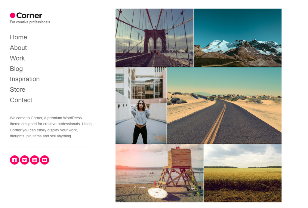Corner is a simple WordPress theme from CSSIgniter. The design provides a good foundation to help site visitors focus on your content and portfolio.