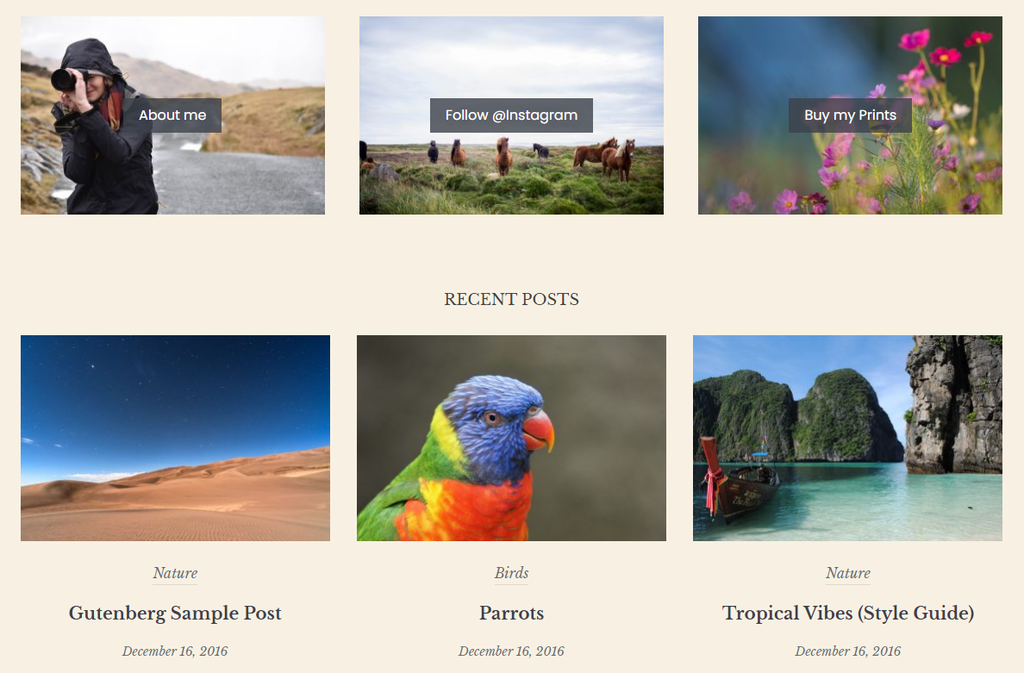 This theme also comes with custom header and footer designs, as well as custom widgets. The latter includes various widget areas for displaying your Instagram social media feed, making this theme a suitable option for showcasing visual portfolios.